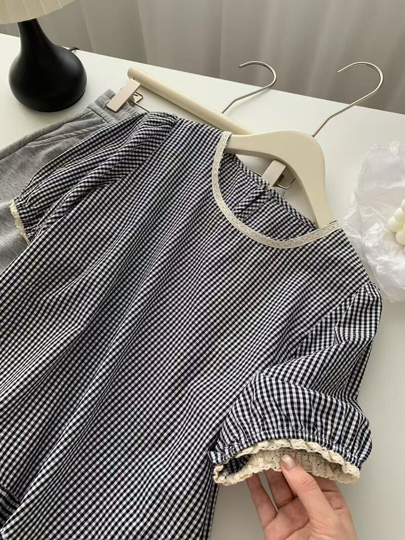 莉爾法蕾絲格紋上衣(現貨)