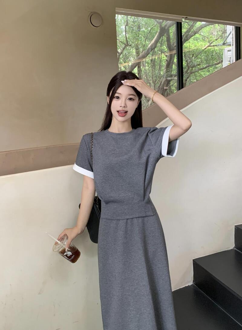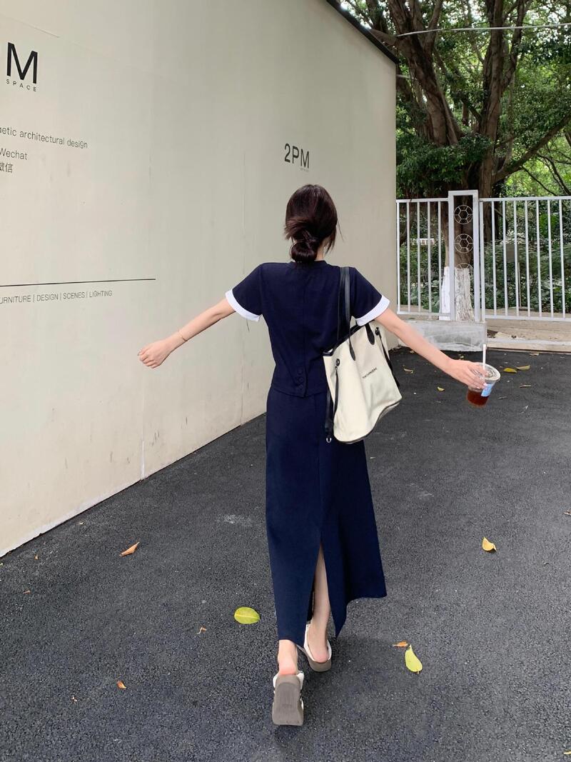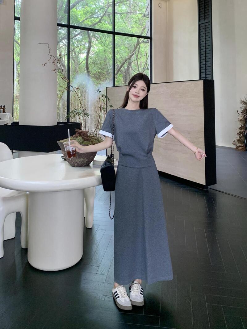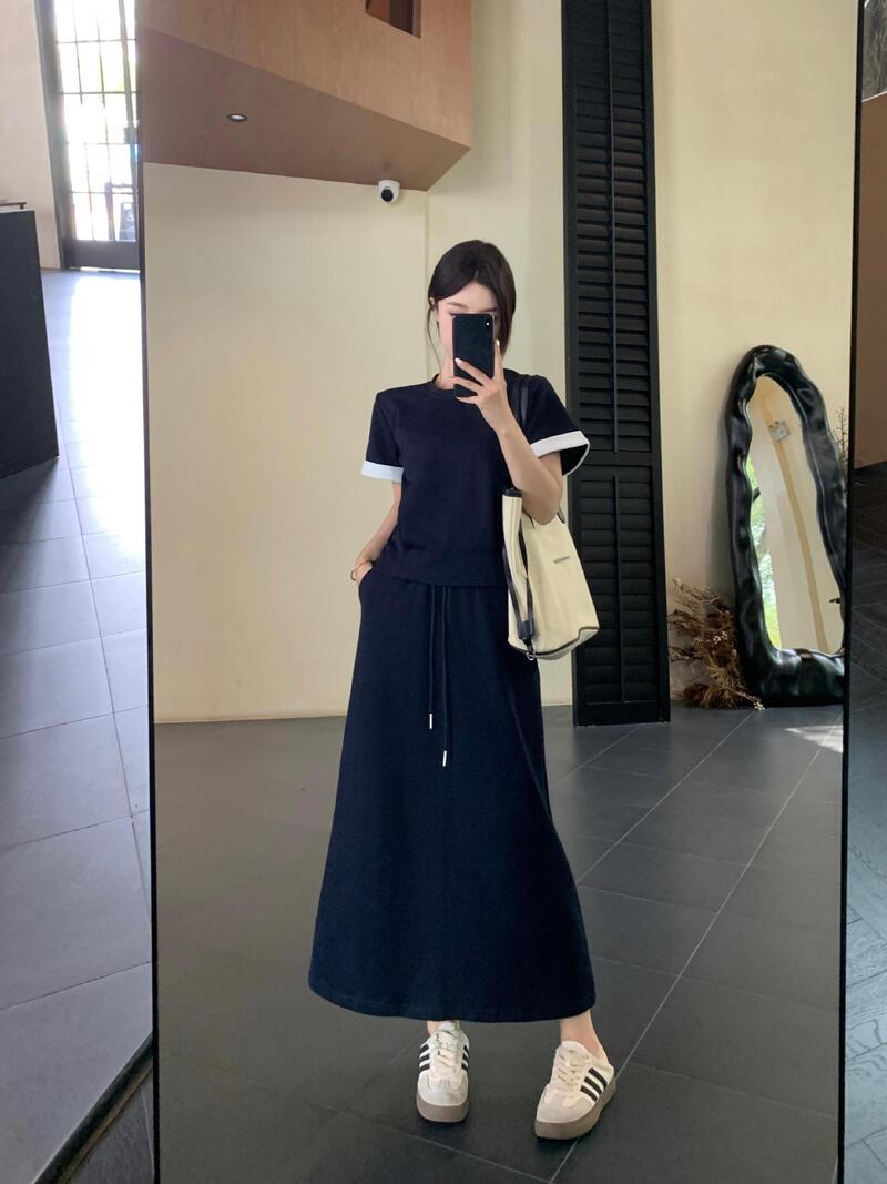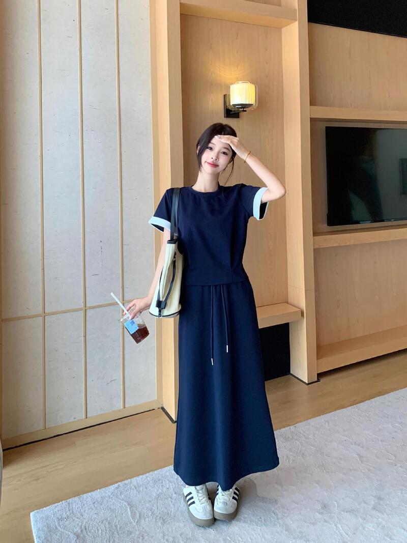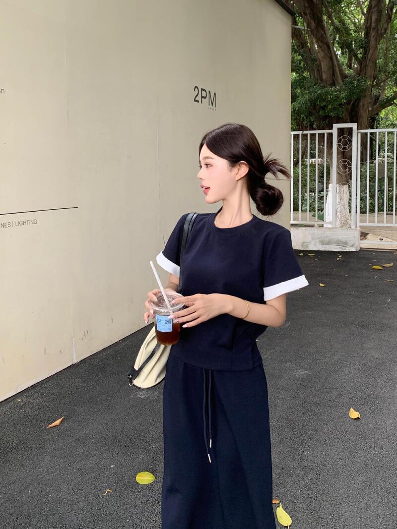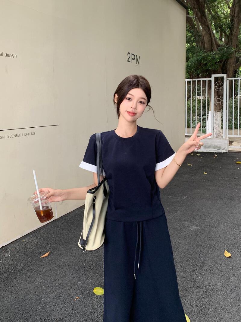 韓系美女棉質套裝 2色 (藍L現貨)